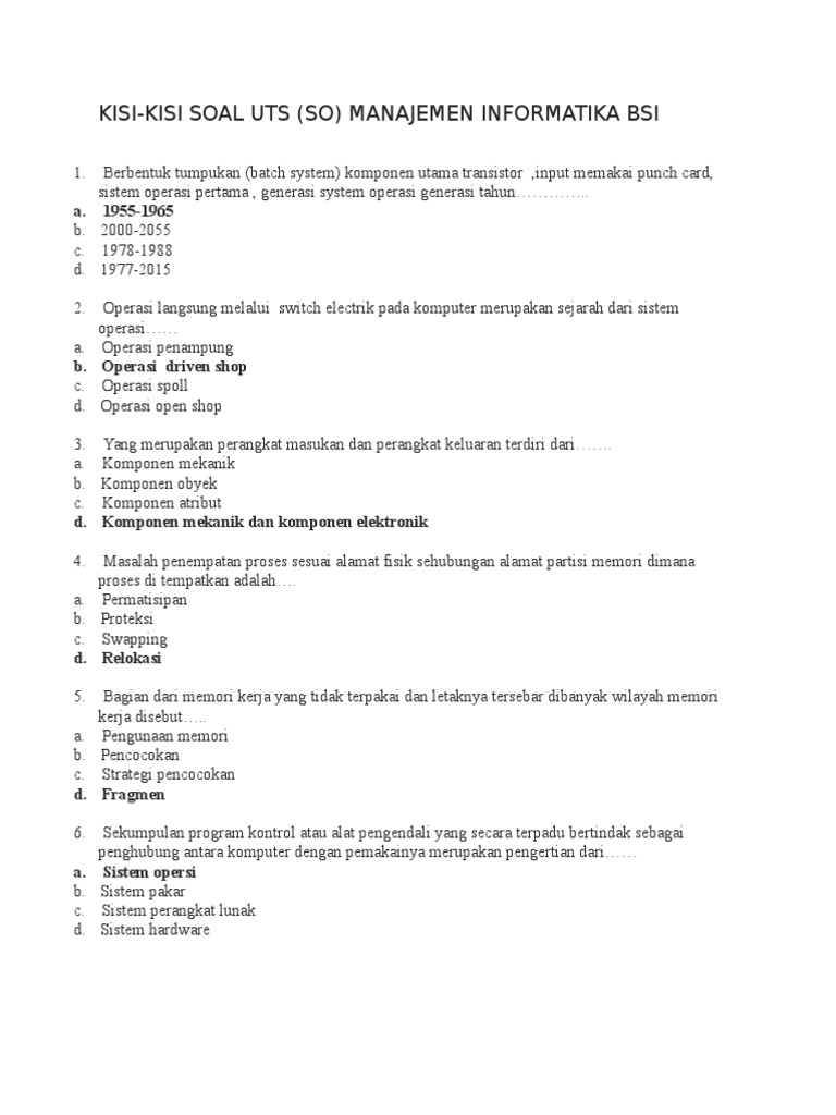Savesave soal uts sistem operasi bsi tipe mudah for later. Soal uts arsitektur komputer semester 2, soal uts arsitektur komputer bsi semester 2, soal uas arsitektur contoh soal uas etika bsi contoh soal uts psbo bs contoh. Aktor bisa saja menyediakan fungsi ke sistem. Sap sistem operasi sumber : Ditambah dengan tugas membuat jurnal penelitian dalam mata kuliah sistem operasi setelah menemukan bahan penelitian. Morfologi dari bakteri adalah : Soal uts sistem basis data 1. Kumpulan instruksi… dengan sistem komputer. Fungsi dinding sel bakteri : Penuliasan program data oriented memiliki tingkat fleksibitas yang tinggi dan bersifat : Bsi, kuliah, quiz, semester 3, soal, uts. Media soal dan jawaban simulasi system operasi semester 3. Operand dari operasi melihat dari sumbernya, operand suatu operasi dapat berada di salah satu dari ketiga daerah berikut ini.